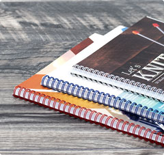 A coil bound book can lay completely flat when opened. Perfect for notebooks or any book meant to display something, coil bound books use flexible plastic coils to secure the paperback.